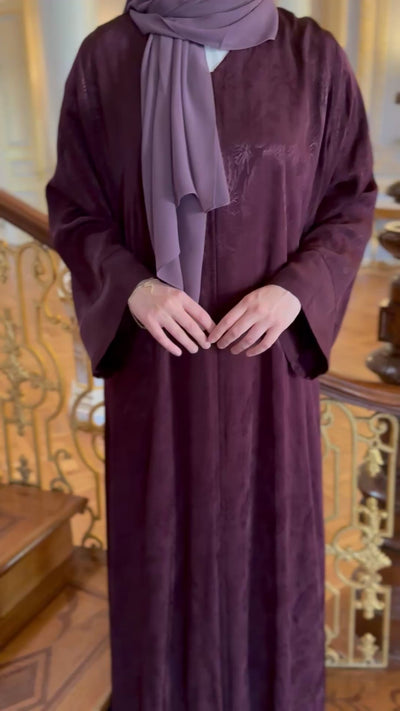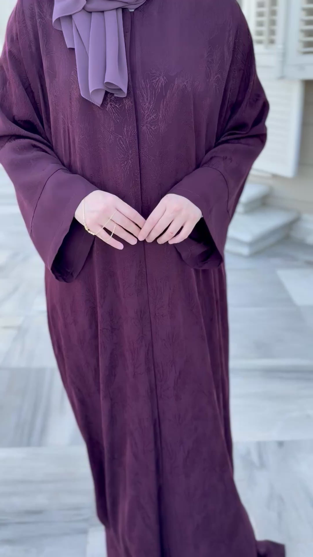 Roses Abaya, parlak ipeğin ışıltısıyla sadece görünmüyor, hissettiriyor; kendine güvenen bir duruşun ifadesi.